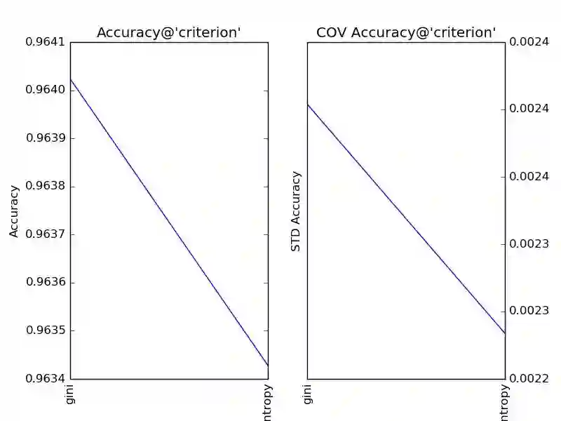 对“分裂条件”(criterion)分别取值gini和entropy,得到调参结果如下: