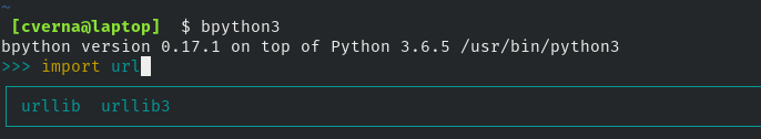 在你输入的时候,bpython 为你提供了选择来自动补全你的代码。