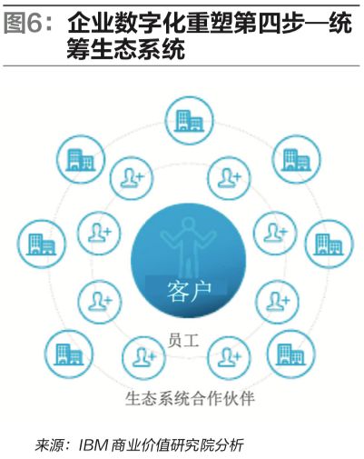 数字化重塑则走得更远。通过与云、认知、移动和物联网(IoT)等多种技术结合,数字化重塑优先从需求、用途或期望的角度重新思考与客户及合作伙伴的关系。数字化重塑帮助企业为客户、合作伙伴、员工和其他利益相关方营造富有吸引力的独特体验。无论体验涉及怎样的支持或履行流程,是直接提供产品或服务,还是采用业务生态系统方式统筹协调来自合作伙伴的产品或服务,企业都可以从数字化重塑获益无穷。数字化重塑最成功的企业会为客户建立互动平台,并充当推动者、沟通者与合作伙伴。
