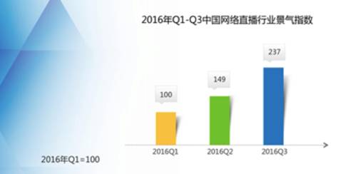 巨头的入场让直播行业持续沸腾,根据《中国网络直播行业景气指数报告》显示,从2015年第四季度至2016年第三季度,直播领域的投资金额增长将近400%,同期的互联网行业只有25%的增速。这样的增速足以证明,2016年第四季度以前的直播行业备受资本青睐。