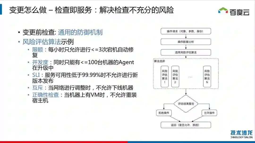 在大规模数据中心中,对生产环境的变更来自于各个方面,有机器类操作、机器环境变更、服务操作等等。这些变更无论是自动化的还是手动的,任何一次变更都会带来服务稳定性风险。百度智能云资深运维架构师杨涛从具体的案例出发,介绍百度应对变更风险的防御机制演变及最佳实践。