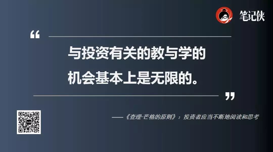 芒格常说,一个成功的投资者从不仅仅满足于做一个“学习的机器”。这种关于学习和再学习的必要性表明,投资者应当不断地阅读和思考。成功的投资者无不是热爱阅读的人。他自己的孩子形容他是“一本长了两条腿的书”。