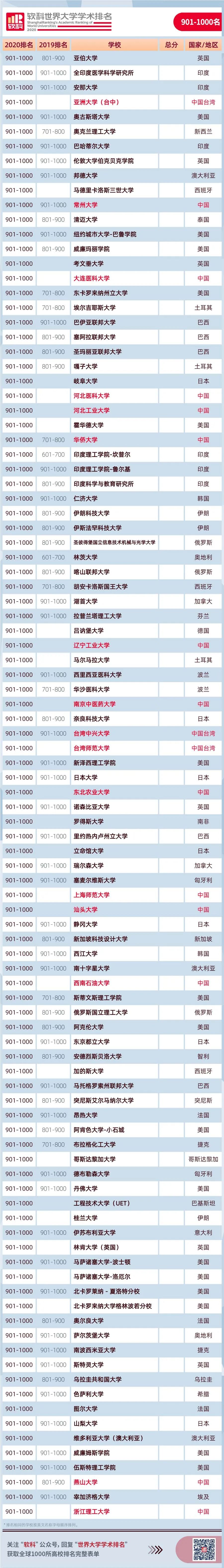 8月15日,2020软科世界大学学术排名如期发布!