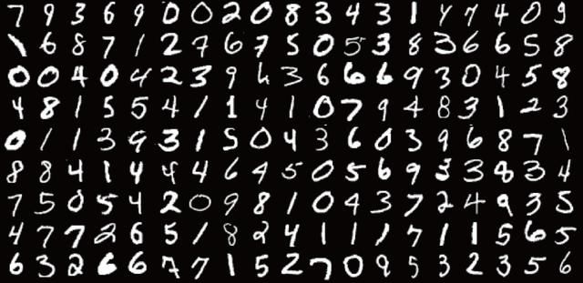 下面示例中使用的手写数字来自于 MNIST 数据库,如下图所示。