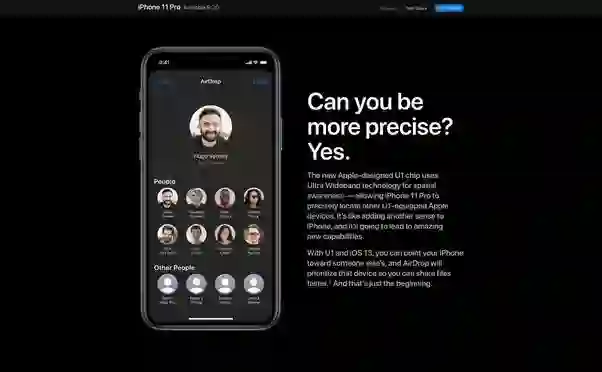 为什么苹果 U1 芯片只在演示文稿中被一笔带过,而没能在苹果的官方网站上拥有自己的一席之地?我们将在后文中具体探讨这一点。目前,苹果公司在其网站上只是提到计划如何利用 U1 芯片开发出 AirDrop 的一套高指向性版本。