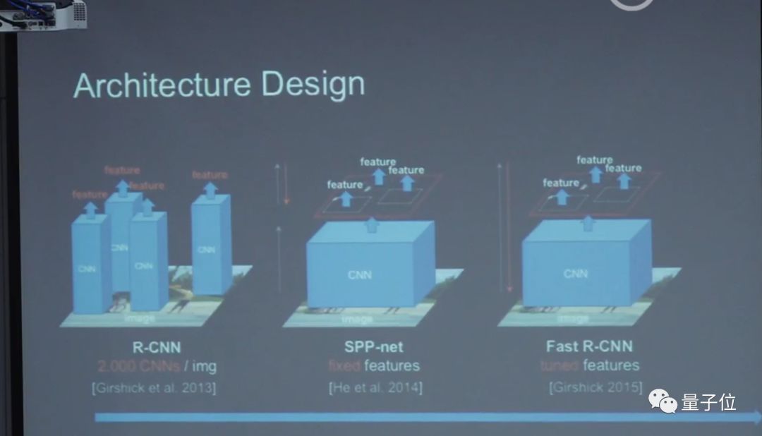 在2013年神经网络刚出来时,微软的一个名叫Rose的研究员做了一个方法:检测在图像中所有位置都让给CNN。我们之后所有东西都是基于这个思想,这也是物体检测中,最近几年最大的突破。