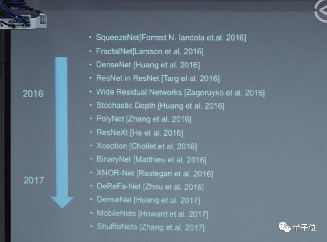 这是视觉识别常用的从2012年到2016年的网络结构,表现出了图像分类很大的变化,最近的新趋势是大家逐渐开始用机器来设计这些网络结构。