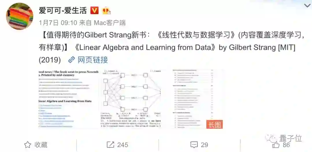 Gilbert Strang本人在新书前言中表示,深度学习的出现不仅对人类生活起到的优化和促进作用,而且还促进了此前各种经典算法的进步。在线性代数基础上理解深度学习让人兴奋。