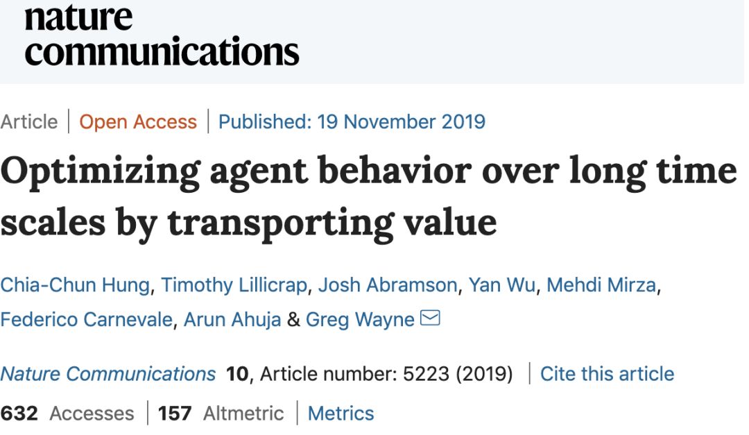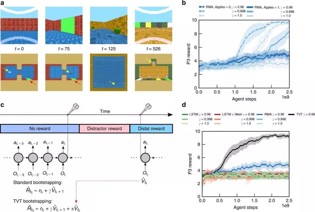 TVT是一种学习算法,它增强了基于记忆的智能体解决LTCA问题的能力。我们可以将注意力记忆访问与RL结合起来,通过自动发现如何忽略它来有效地将问题转换成一个没有延迟的问题,从而对抗偏差。