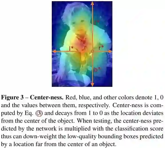为了剔除远离目标中心的低质量预测bbox,作者提出了添加center-ness分支,和分类分支并行。