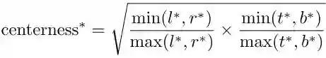 开根号使center-ness衰退缓慢。center-ness范围为0-1之间,通过BCE训练。测试时,最终分数由center-ness预测结果和分类分数乘积得到。