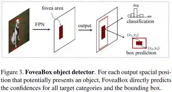 人类眼睛的中央凹:视野(物体)的中心具有最高的视觉敏锐度。FoveaBox联合预测对象中心区域可能存在的位置以及每个有效位置的边界框。由于特征金字塔的特征表示,不同尺度的目标可以从多个特征层中检测到。