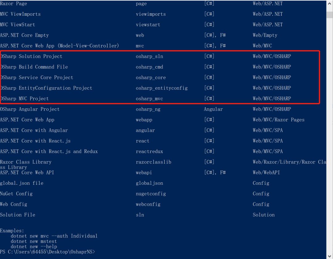 1、执行命令dotnet new -i OSharpNS.Template.Mvc_Angular