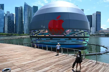 苹果在新加坡建世界首个球形水上漂浮零售店