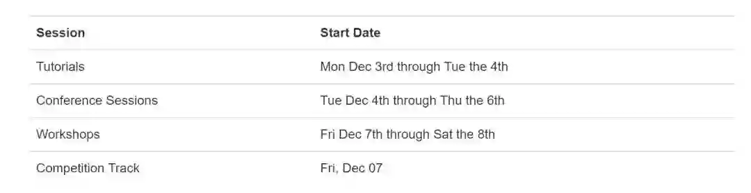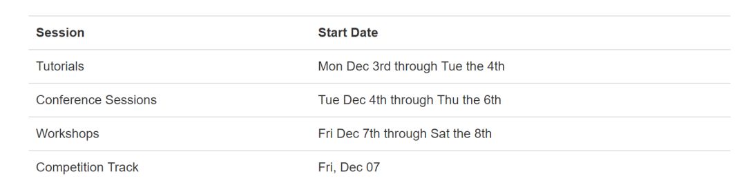 目前,NIPS-2018,即第32届年NIPS会于2018年12月2日至8日在加拿大蒙特利尔会议中心举行。会议流程安排如下: