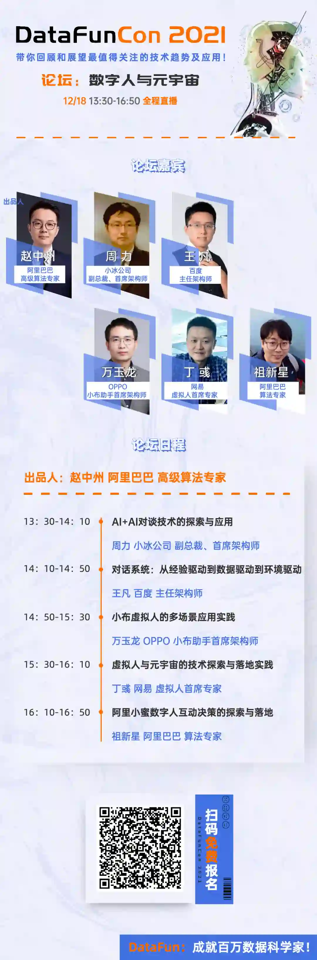 数字人与元宇宙:数字人在图形图像、自然语言、语音AI能力及基础软硬件的发展推动下,近两年实现了爆发式增长,同时也作为元宇宙的场景入口与连接纽带备受瞩目。近期我们看到业界厂商集中推出了各自的数字人产品与平台,不但帮助数字人具有了更低的构建成本与更精细的表现力,还使其具备多模理解能力,拥有常识能感知环境,能够自主互动与情感化表达,推动了数字人智能化和场景化的升级。在这背后经过了怎样的探索与演进?本次大会的多位行业资深专家将为大家带来他们的最新实践。