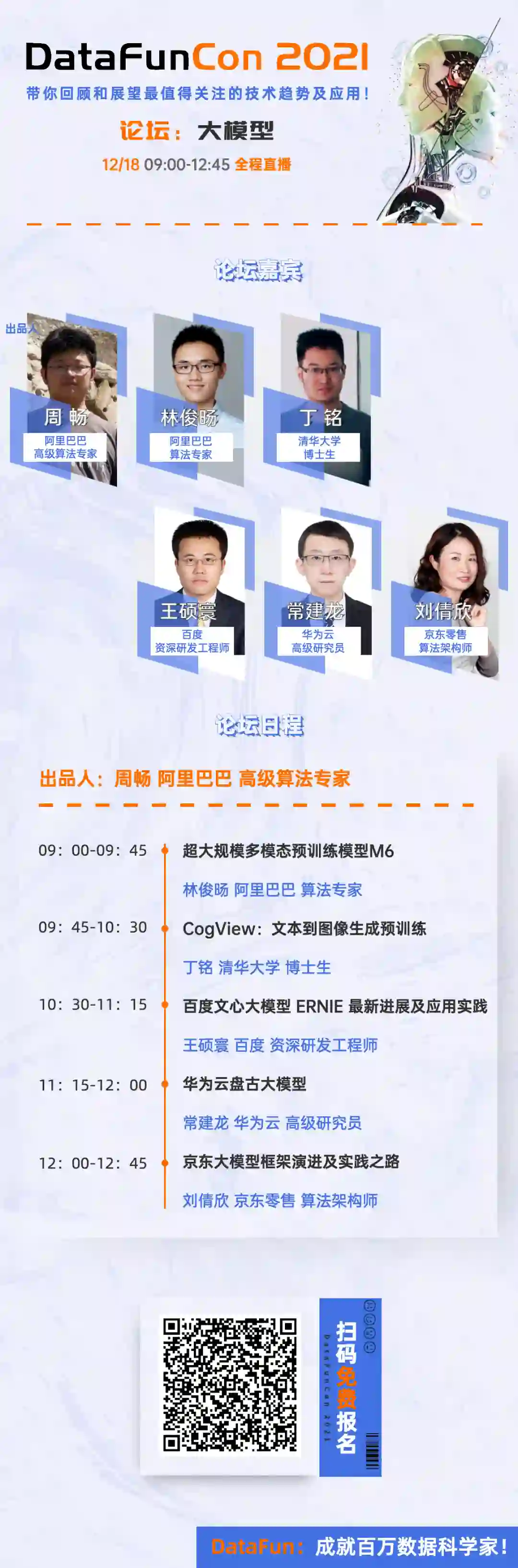 大模型:深度学习近年来的飞速发展,得益于数据与算力的突破、通用思想与工具的普及。随着Transformer-based模型在不同领域验证了其对于数据和模型参数的高可扩展性,一种趋势是将预训练模型做大、做通用,来获得更好的迁移性,甚至获得强大且简洁的零样本或少样本学习的能力。大会将讨论大模型训练效率、业界实际落地应用情况,以及学术界的相关进展。