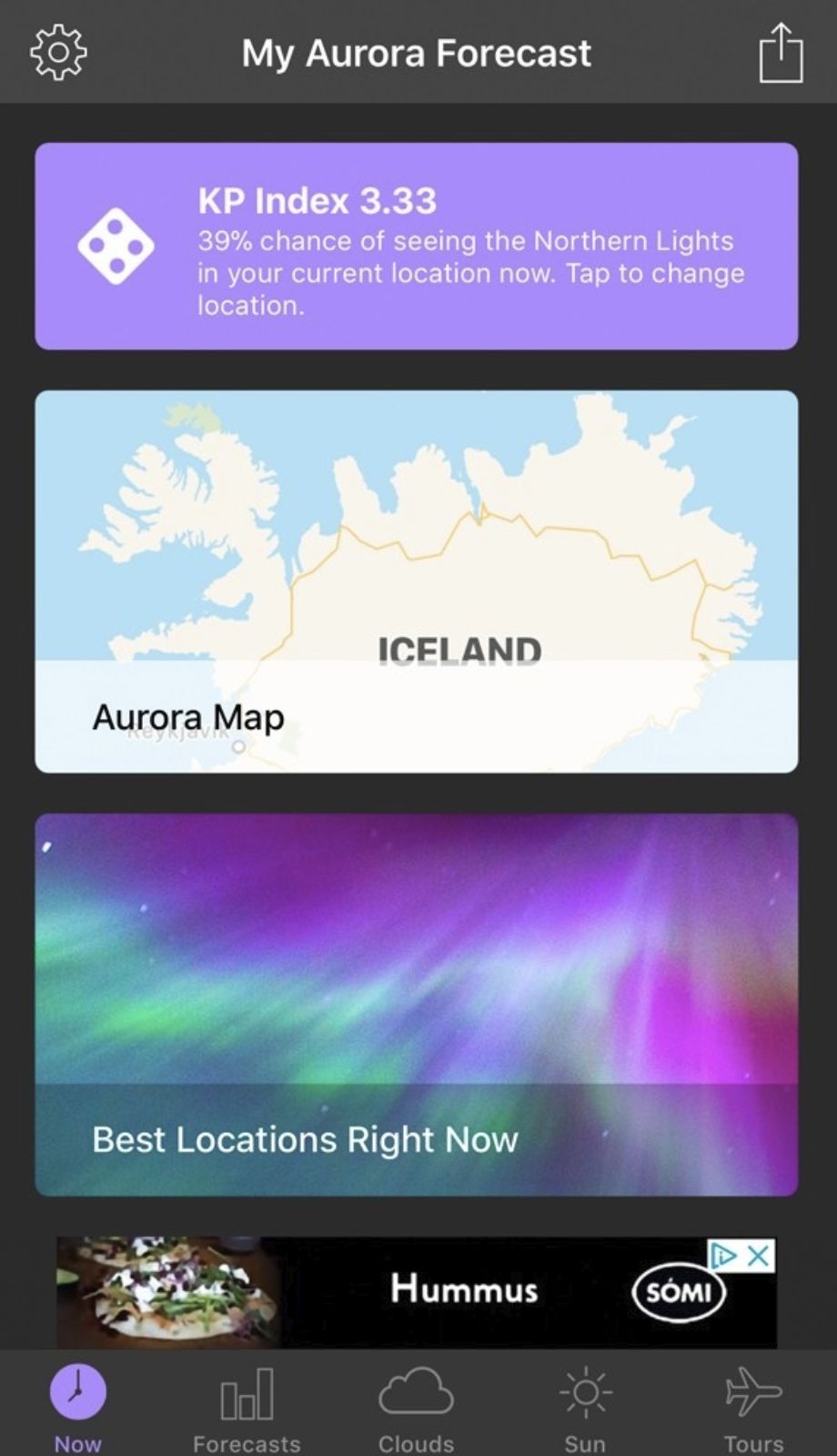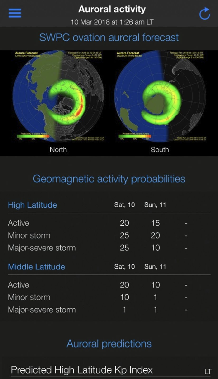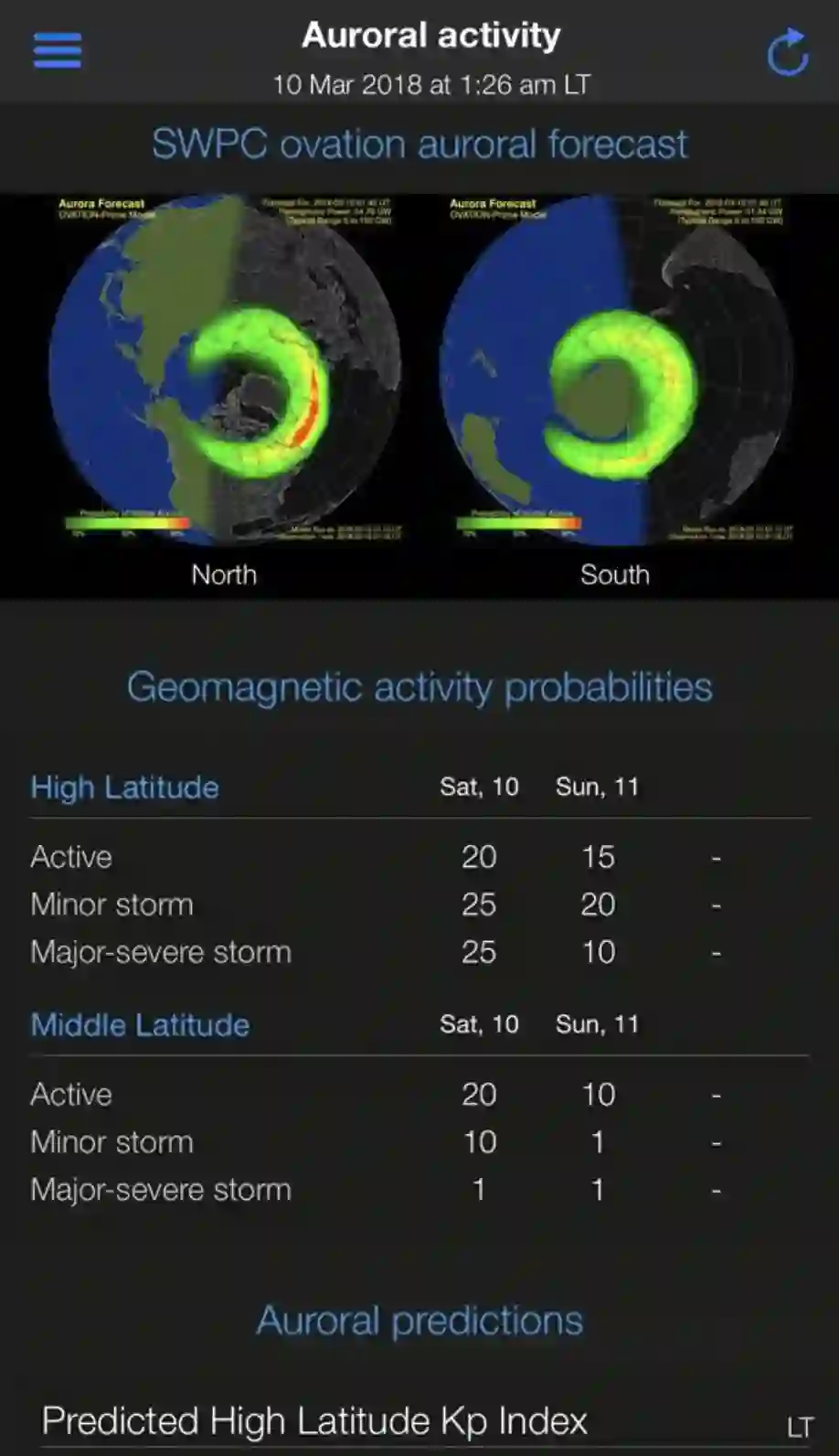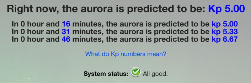 每晚回到住处,我也会通过下面两个网站查询极光预测情况,但是如果想随时查看的话,还是手机上的APP更为方便。