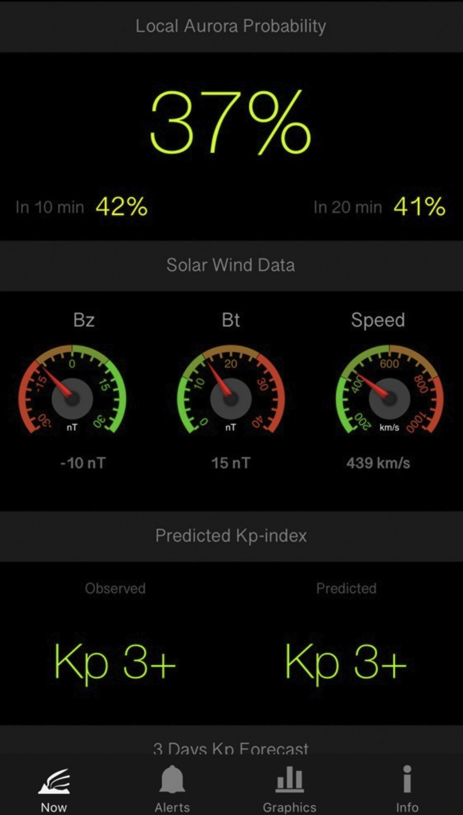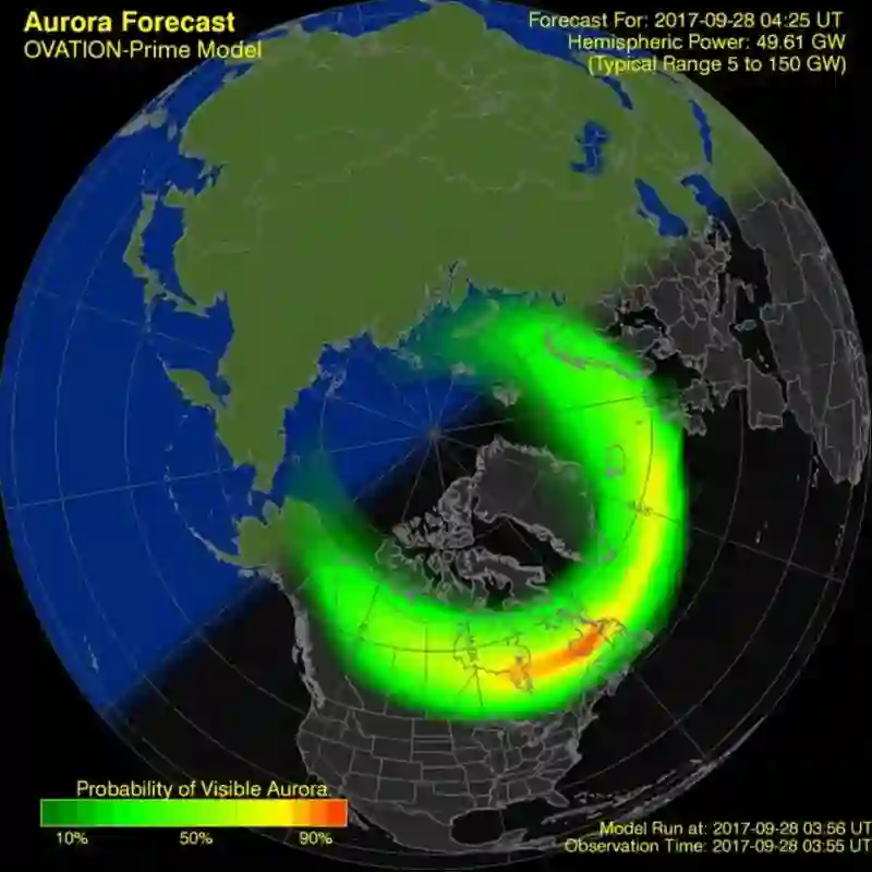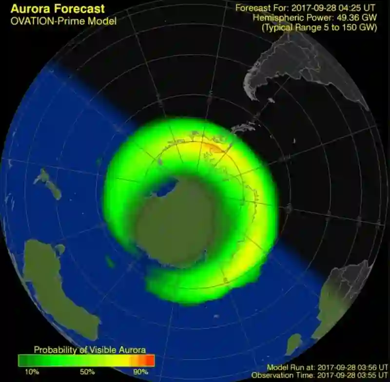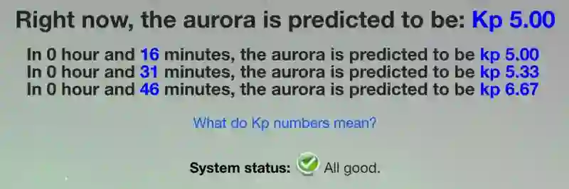 或参考当地网站,预报更为准确些。网站均会显示出未来三天和一小时之内的极光指数预测。