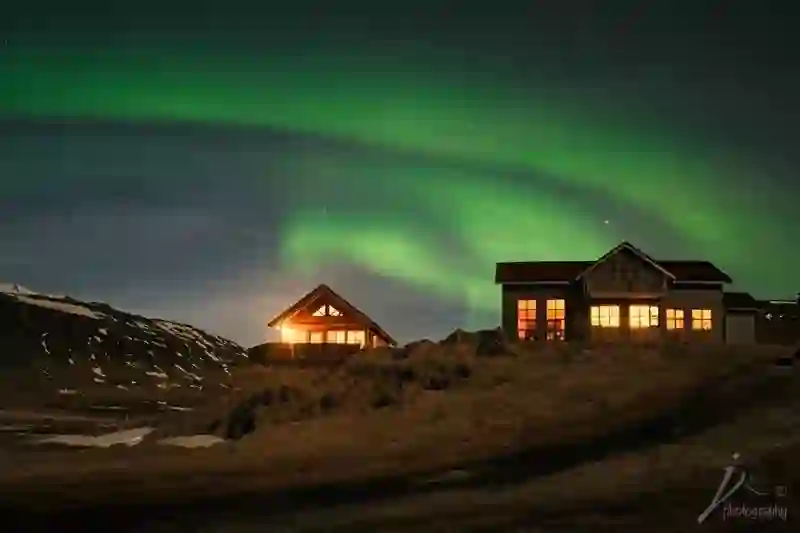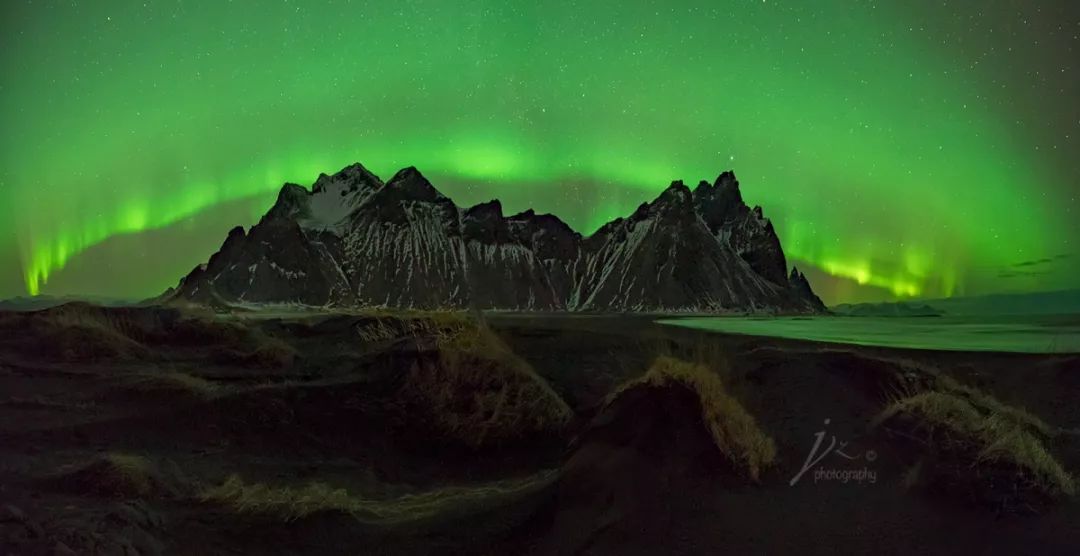 地景在很大程度上影响着照片的成败,和星空摄影是一样的道理,极光要有地面景物来衬托。只有极光的照片属于旅行者视角,只能说纪录了那一刻的天象。地景的选择要随机应变就地取材,山峰、瀑布、岩石、树木、房子都可用来衬托极光之美。