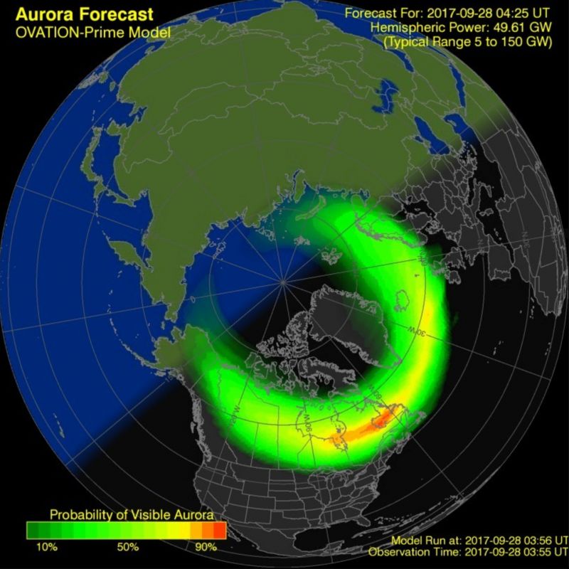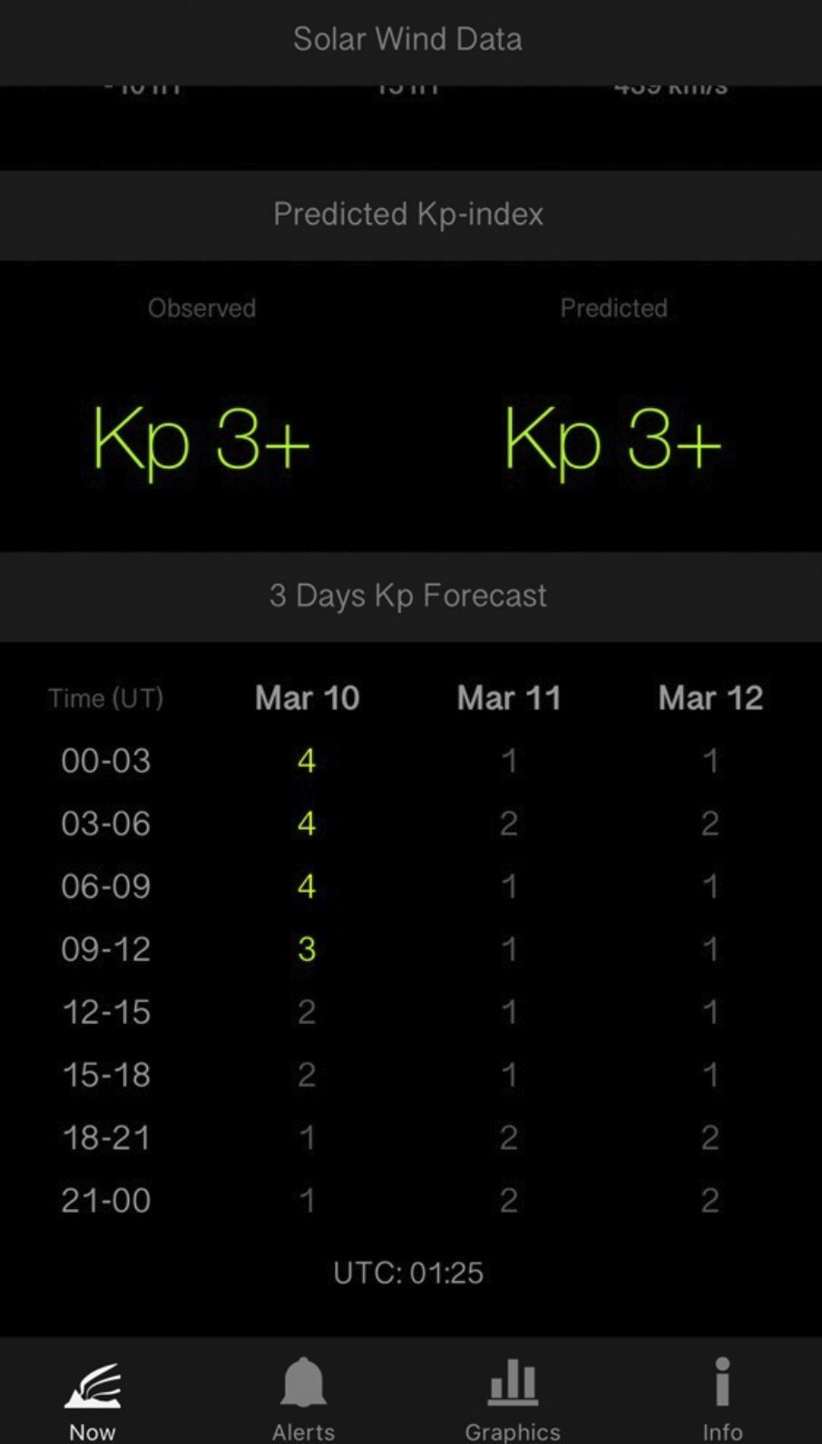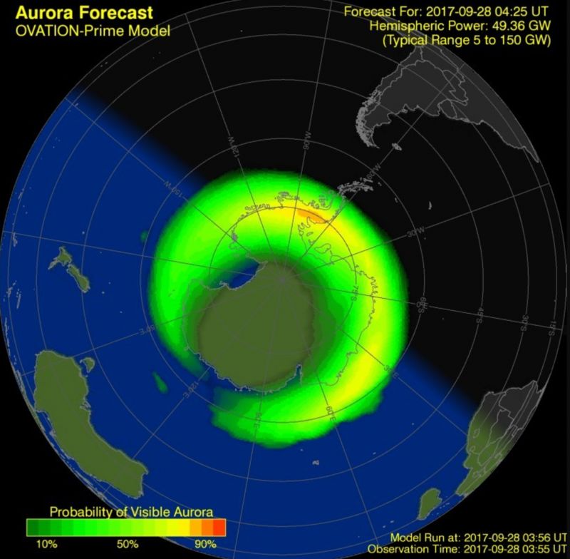 AuroraNow的分时段预测显示9日晚和10日凌晨KP值:4