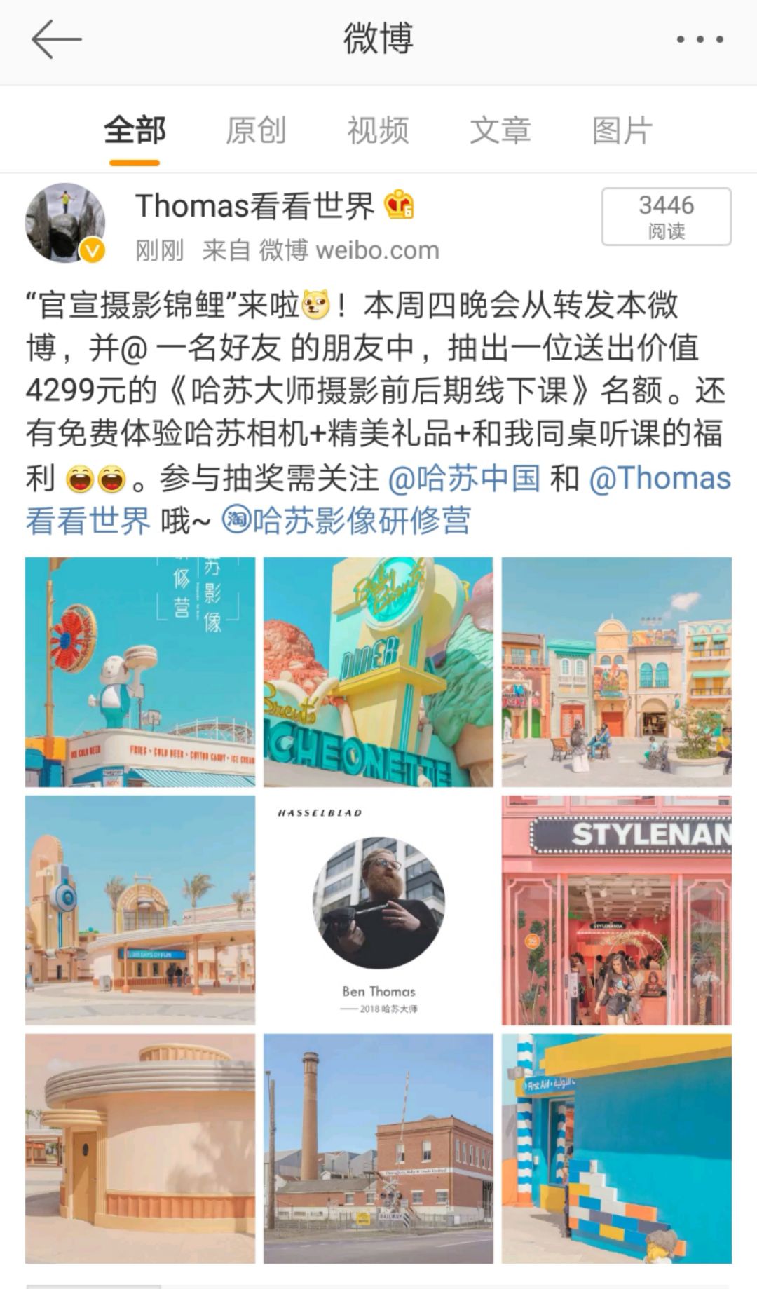 托马斯的微博 @Thomas看看世界,正在举行转发抽奖活动,奖品是周末和托马斯同桌参加《哈苏大师前后期线下课》的免费名额一位,价值4299元哦,欢迎大家前往微博参与~