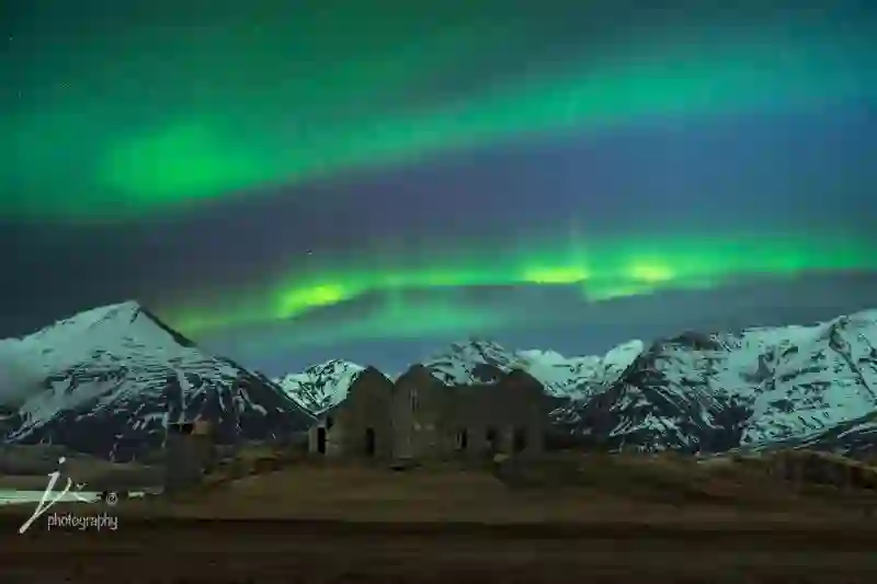 通过上面的实例充分说明,拍摄极光并不是固定不变的参数。首先设置大光圈,然后要观察极光形态的变化快慢决定相应的快门速度,最后再根据地景的环境光源情况调整ISO。