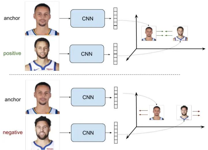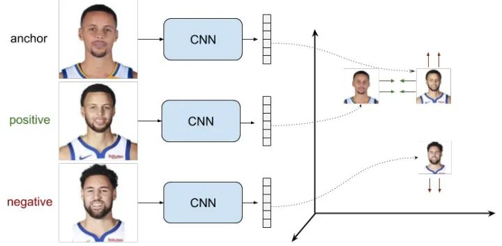 Fig 2.2 Triplet loss的例子,其中的CNN网络的参数是共享的。
