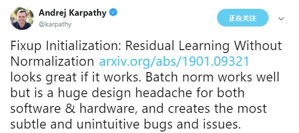 前几天,我们介绍了「机器学习领域的七大谣传」,其中一个谣传就是「训练超深度残差网络怎么少得了批归一化(BN)!」。文中介绍了论文《Fixup Initialization: Residual Learning Without Normalization》表明在不引入任何归一化方法的情况下,通过使用原版 SGD,可以有效地训练一个 10,000 层的深度网络。也就是说「训练超深残差网络可以不用批归一化」。
