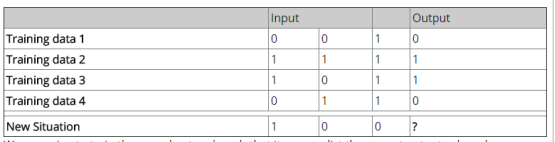 training_outputs = np.array([[0,1,1,0]]).T