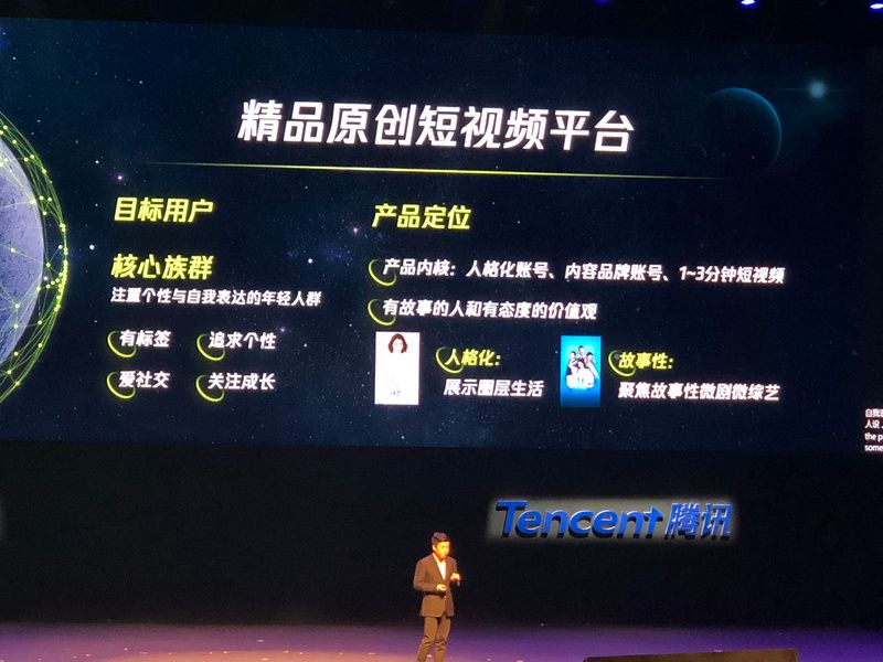 在11月1日腾讯全球合作伙伴大会上,腾讯短视频平台“yoo视频”正式发布,产品定位于1~3分钟短视频,聚焦故事性微剧微综艺,目标用户为注重个性与自我表达的年轻人群。