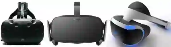 从左至右分别是 HTC Vive、Oculus Rift 和 PSVR