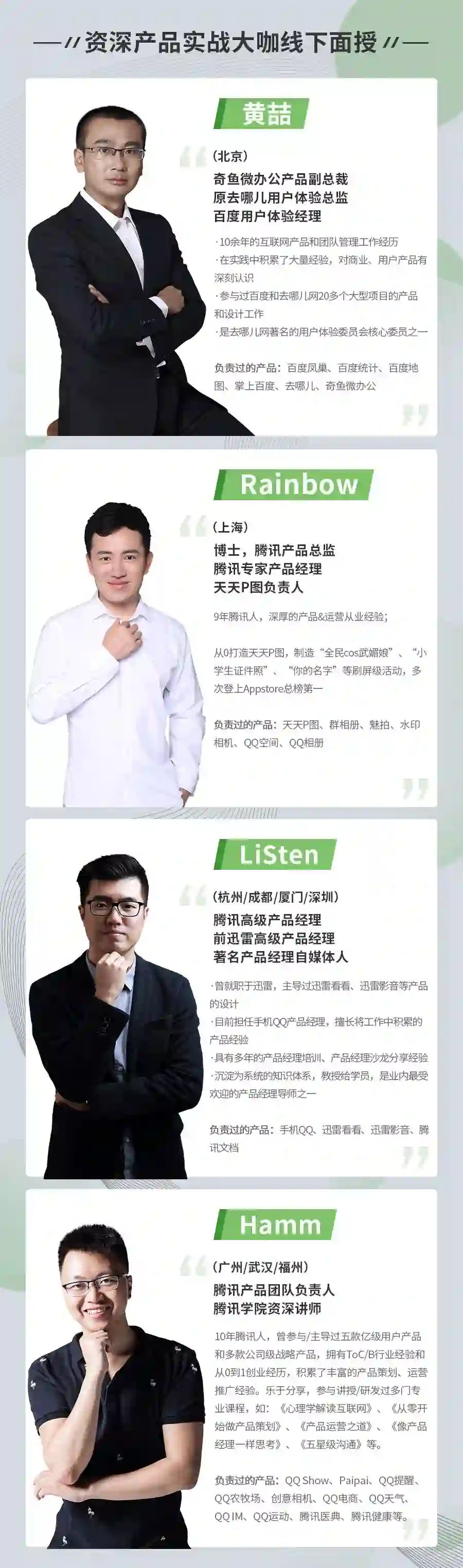 导师们基本都是在产品领域历练了近十年,且都是在职