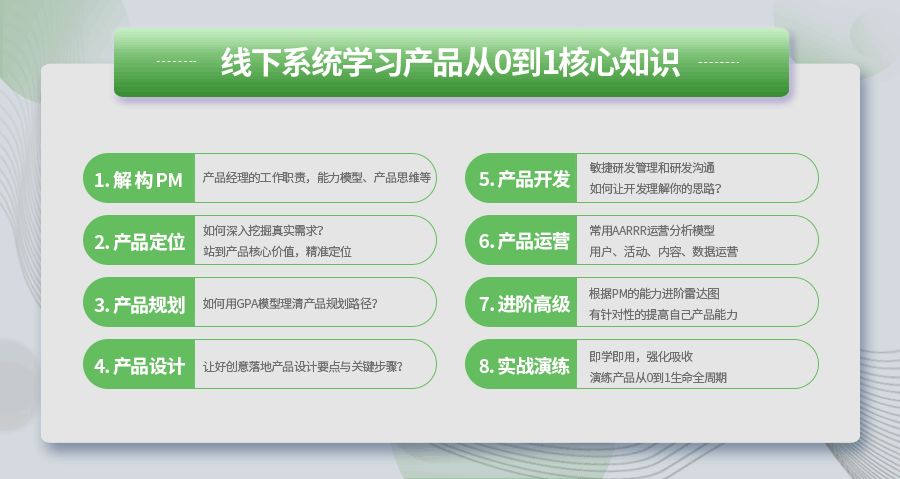 通过学习能够掌握和理解一款产品从0-1全流程是怎么做的,需要掌握什么样的方法论。