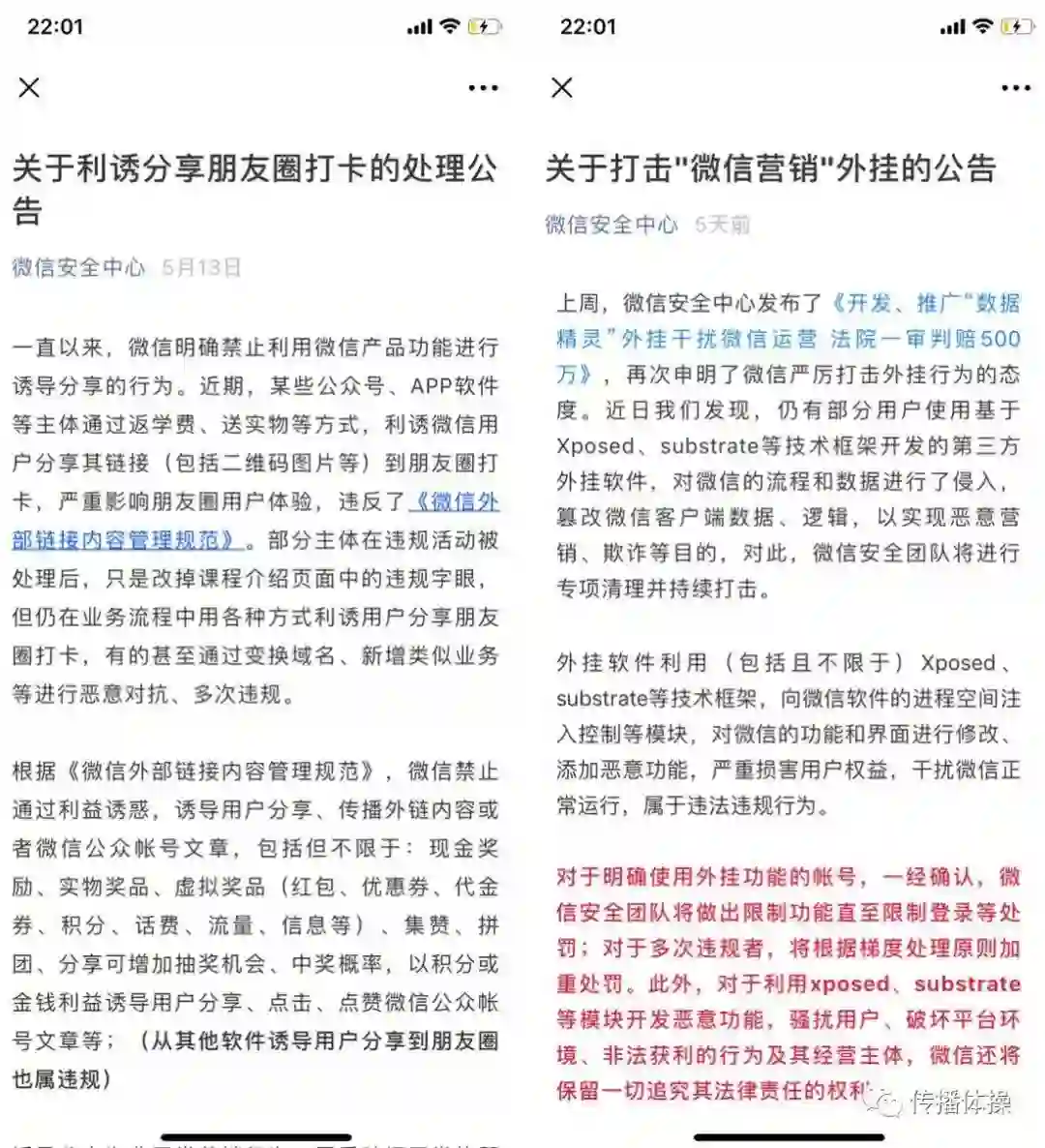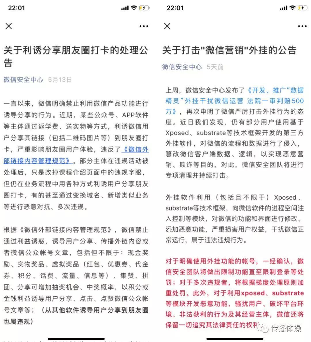 5月中旬,微信官方发文重申对裂变营销的封杀,6月中旬,微信发出公告打击营销外挂,整个线上教育行业哀鸿遍野;不少人也会发现,使用相关微信自动化工具软件的账号更容易被封号了。