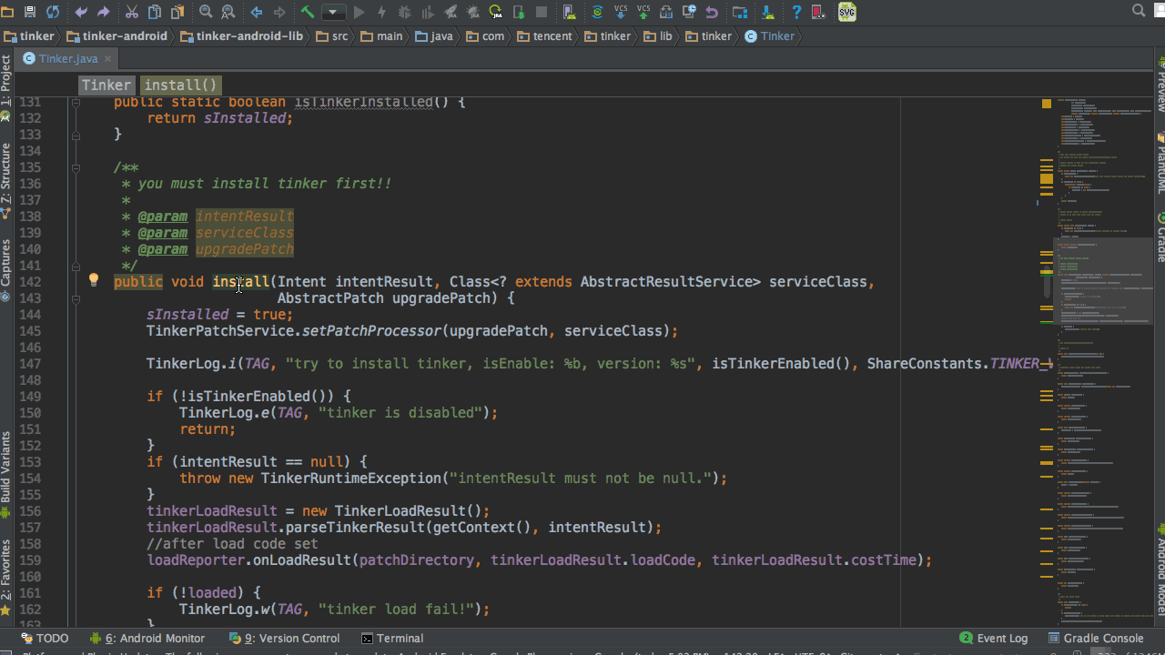 IDE支持跳转到变量(方法)的定义处或者调用处,Vim也支持,而且也很方便。只需要将光标定位到方法名,然后输入gd即可。配合Android Studio的Navigate Back,可以十分方便地查看方法的调用。