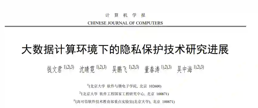【导读】北京大学最新大数据计算环境下隐私保护技术进展。