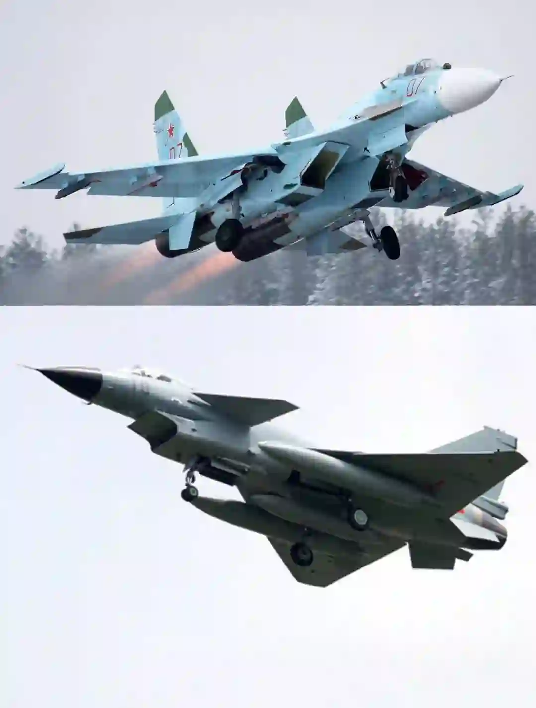 中国空军遵循一代引进一代研发的思路:上-90年代初引进俄制苏27 下-2004年服役的国产歼10