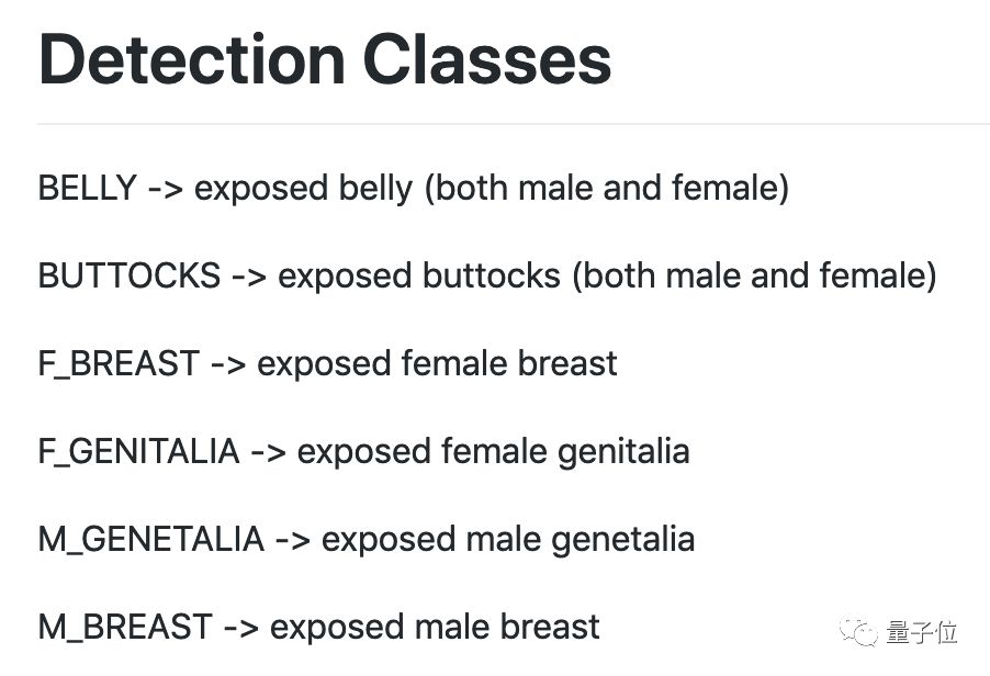 目标检测模型则能检测6个类别:不分性别的腹部、臀部,和区分了性别的不可描述部位。