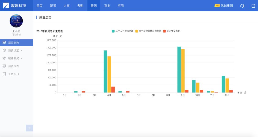 2017年12月,喔趣发布了人力精算云产品。在考勤、人事管理和薪资计算的基础上,帮助企业进行智能排班。