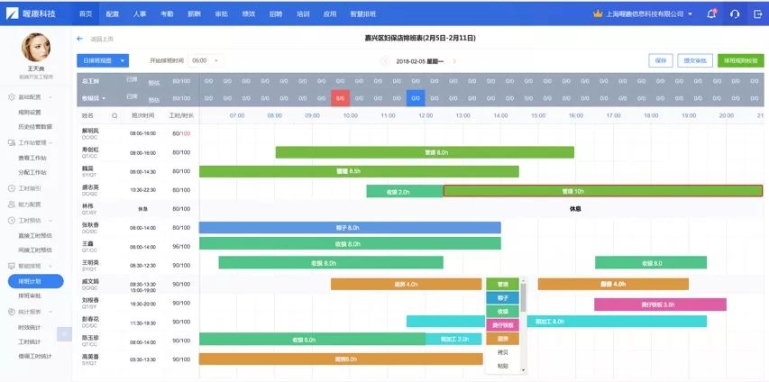 在餐饮企业中,门店的排班通常是由店长负责。上海某家一点点奶茶店长Maggie(化名)告诉新经济100人,使用喔趣的系统前,她排一次班需要花费至少三四个小时。