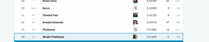 在kaggle排行榜上可以看到模型在测试集上的效果,本文提出的解决方案在本次比赛中排名34,平均精度均值(MAP)为0.41928。