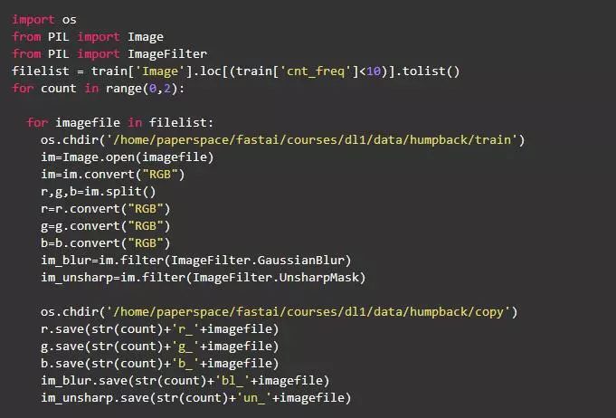 根据这些观察结果,使用以下代码对训练样本中不平衡类的图像进行小幅改动并保存: