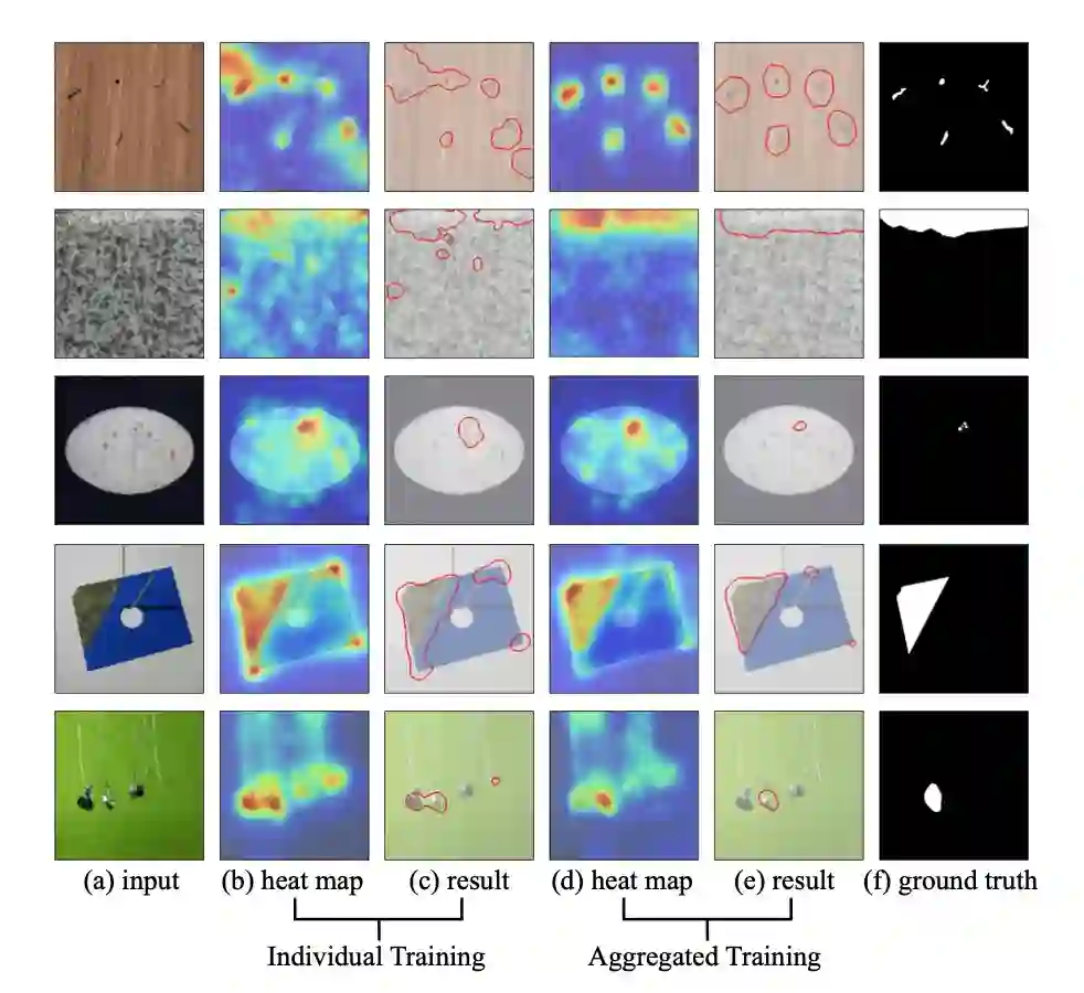 此外,作者还展示了异常定位可视化的结果。可以看到,联合训练可以使得模型的异常定位变得更加准确。