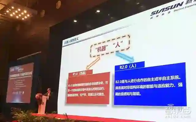 首先,他提到机器人正从1.0时代进化到2.0时代。上世纪60年代,以预编程离线交互为特点的工业机器人兴起,机器人行业进入1.0时代,到了90年代又出现了可遥操作和局部自主的特种机器人,而今天机器人正进入2.0时代,本次的标志则是以认知和合作为特点的协作机器人为标志的。