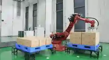 从货物入库、到打包等环节,无人仓配备3种不同型号的六轴机械臂;有3种型号不同的智能搬运机器人承担分拣任务;