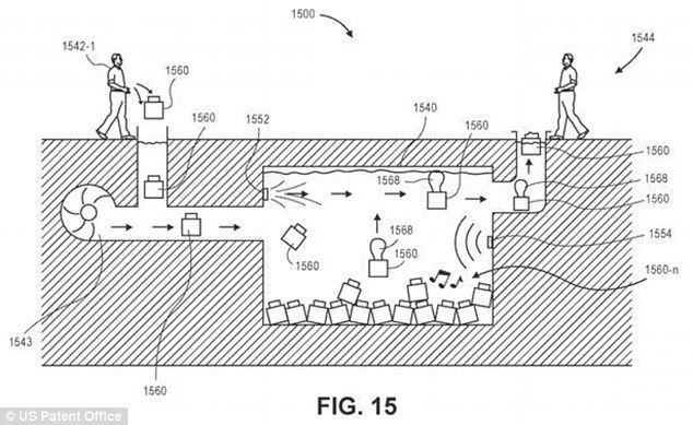 此外,亚马逊还有些大脑洞的专利,比如用于城市地区的、能“存放”数百个无人机的九层蜂巢(nine-story hive),还有几乎没有存储面积限制的水底仓库,不仅能分行存储,有效利用空间,用户还能随意自取,节省人力成本。