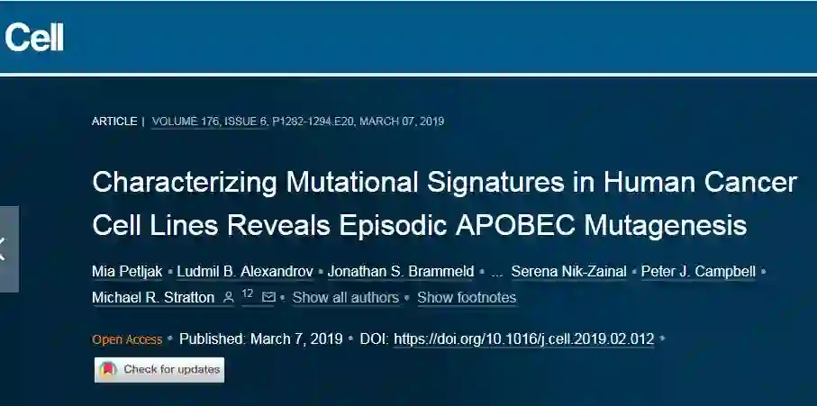 3月7日,发表在《Cell》杂志上的一项论文中,来自Wellcome Sanger研究所的研究人员和他们的合作者研究了1001种人类癌细胞系和577种人类癌症移植物的基因组序列,发现了在人类癌症中的一种主要突变模式,发生在癌细胞株的爆发中。但这些突变爆发的原因仍是未解之谜。