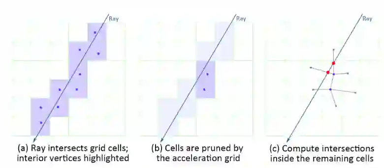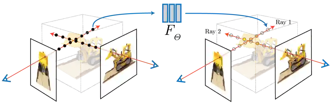传统的NeRF实现使用体积渲染算法,用于在光线沿线的数百个采样位置为每个像素都运行一次大规模MLP,以便估计和密度和辐射度。这种渲染过程对于交互式的可视化来说太慢了,没法用于实时渲染。