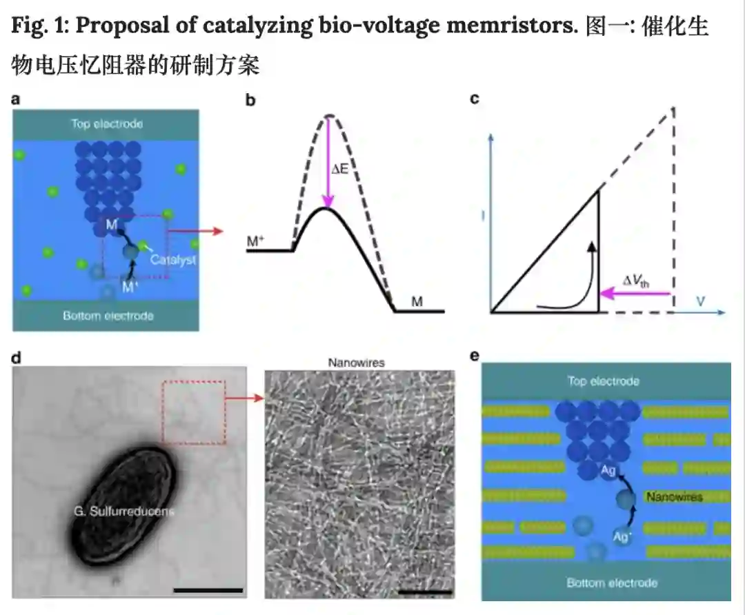《自然》上发表的论文中具体解释了,蛋白质纳米线可以促进银(Ag + )的还原。由于还原发生在生物环境中,表明他们能够催化生物电压记忆电阻器。因此,研究员利用蛋白质纳米线构建了银记忆电阻器,方便切换。